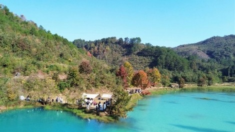 泉州永春马跳水库宛若翡翠镶嵌在群山间